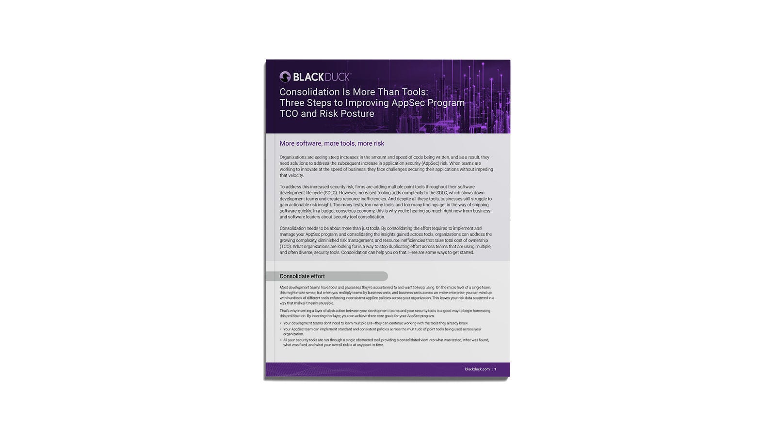 By consolidating your effort, insight, and tools, you can reduce the complexity and friction of your processes and tools. Consolidation streamlines AppSec efforts, improves your organization’s total cost of ownership (TCO), and enhances your risk management.